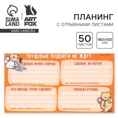 Главная » Товары для детей Планер с отрывными листами, 50 л Просмотров 5 Планер с отрывными листами, 50 л «Трудокот». ArtFox
