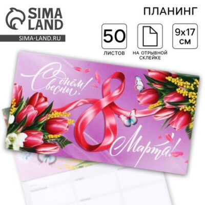 Главная » Товары для детей Планер с отрывными листами, 50 листов. 17×9 см Просмотров 3 Планер с отрывными листами, 50 листов. 17×9 см «С 8 марта». ArtFox