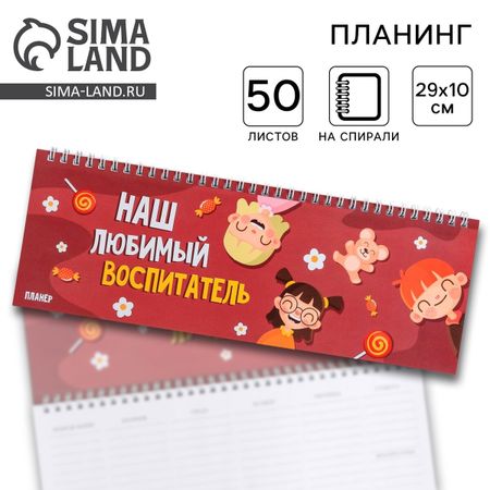 Планинг прямоугольный тонкий картон «Наш любимый воспитатель», 50 листов. Планинг прямоугольный отлично подойдет в качестве подарка. Яркий дизайн несомненно привлечет внимание и будет выделяться , а удобный формат позволит использовать с комфортом. • Пиши • Планируй • Выполняй <ul> <li> Обложка : мягкая;</li> <li> Количество листов: 50;</li> <li> Крепление : на гребне/спирали;</li> <li> Особенности : дизайнерский блок;</li> <li> Упаковка: пленка.</li> </ul> Состав: Бумага, картон.