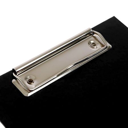Планшет с зажимом А5, 2 мм, Calligrata, картон/бумвинил, черный (клипборд). Планшет формата А5 с верхним прижимным механизмом из жесткого износоустойчивого картона с двухсторонним покрытием из практичного бумвинила. Оснащен прижимным механизмом из качественного металла, который надежно удерживает документы, позволяет комфортно делать записи на весу. <ul> <li> Формат: A5 (218 х 175 мм).</li> <li> Материал: картон/бумвинил.</li> <li> Наличие крышки: нет.</li> <li> Толщина материала: 2000 мкм.</li> <li> Наличие кармана на внутренней стороне папки: нет.</li> <li> Механизм: прижим.</li> <li> Цвет: черный.</li> <li> Текстура: гладкая.</li> </ul>