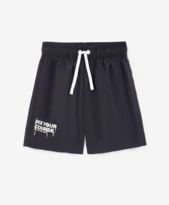 Динамичные и яркие плавательные шорты, — отличный повод подумать об отдыхе у воды. Шорты выполнены из тонкой специальной ткани, которая быстро сохнет, не стеснет движений, не выгорает. Пояс на резинке с регулируемым шнурком гарантирует удобную посадку изделия на фигуре. В оформлении модели использован контрастный шрифтовой принт.