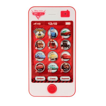 Плеер музыкальный «Тачки», 2 песни, 10 стихов, 10 заданий. <b> Устроим гонки за знаниями? </b> Малыш в восторге от современных технологий? Тогда стильный музыкальный плеер «Тачки» торговой марки Disney придется ему по вкусу. С героями любимого мультфильма будет весело не только развлекаться, но и получать новые знания. <b> А в этом ему помогут: </b> <ul> <li> 10 стихов о забавных машинках; </li> <li> 2 песенки; </li> <li> 10 заданий; </li> <li> 10 кнопок с цифрами. </li> </ul> Дошкольник с удовольствием вовлечется в захватывающую игру, будет петь зажигательные песенки вместе с тачками, выполнять интересные задания и учить цифры. Играя вместе с машинками, малыш освоит устный счет, разовьет воображение, логическое мышление, память, слуховое и зрительное восприятие и мелкую моторику. В изделии используются 2 батарейки типа ААА, в комплектацию не входят. Товар предназначен для детей старше 3 лет.