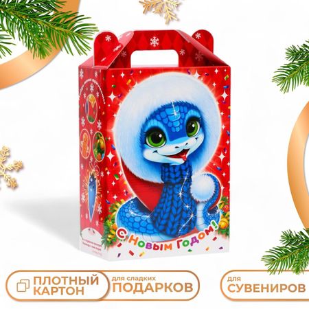 Подарочная коробка новогодняя «Василек Символ года», упаковка, 18.5×10×30.5 см. <strong> Подарочная новогодняя коробка</strong> предназначена для использования на утренниках и для подарков под елку для детей. Эта коробка создана специально для того, чтобы сделать праздник еще более ярким и запоминающимся. Коробка выполнена из качественных материалов, которые обеспечивают сохранность содержимого. Она имеет яркий и красочный дизайн, который отражает атмосферу Нового года. <strong> Эта коробка идеально подходит для упаковки конфет, сладостей, игрушек и других небольших подарков.</strong> Она может использоваться как самостоятельный подарок или как часть большого презента. Подарочная новогодняя коробка — это не просто упаковка, это способ создать волшебство и ощущение праздника. Она помогает передать детям радость и ожидание чуда, которое всегда ассоциируется с Новым годом.