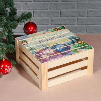 Подарочная коробка реечная "В этот Волшебный Новый год!", 30х30х15 см, с крышкой, печать. Яркая, оригинальная и красочная упаковка не менее важна, чем сам презент — она дарит ощущение праздника и позволяет любой подарок сделать привлекательней. В деревянной коробке не помнется и не сломается даже самый хрупкий сувенир. Ее можно использовать не только как упаковку для подарка, но и как «домашнюю систему хранения» для полезных мелочей.