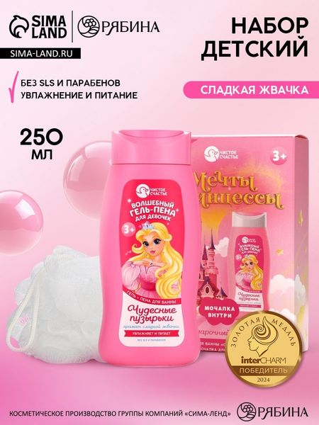 Главная » Товары для детей Подарочный набор детский «Мечты принцессы», гель-пена 250 мл, мочалка, Чистое счастье Просмотров 4 Подарочный набор детский «Мечты принцессы», гель-пена 250 мл, мочалка, Чистое счастье Чистое счастье