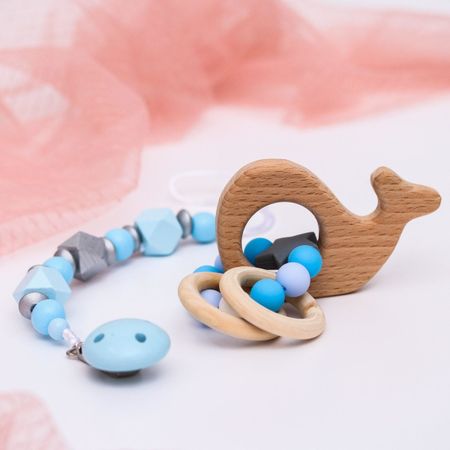 Подарочный набор M&B «Малыш» держатель для соски-пустышки, грызунок-прорезыватель. Прищепка для пустышки предотвратит потерю маленького предмета. Используйте специальный держатель, и соска всегда будет под рукой! Изделие фиксируется на одежде ребенка. На конце цепочки есть карабин, который зацепляется за кольцо пустышки. Надежное крепление убережет вещь от падения на пол, если малютка случайно выронит ее изо рта. С держателем можно играть, притягательный дизайн точно понравится малышу. Товар изготовлен из качественного нетоксичного материала. Подходит для малышей.
