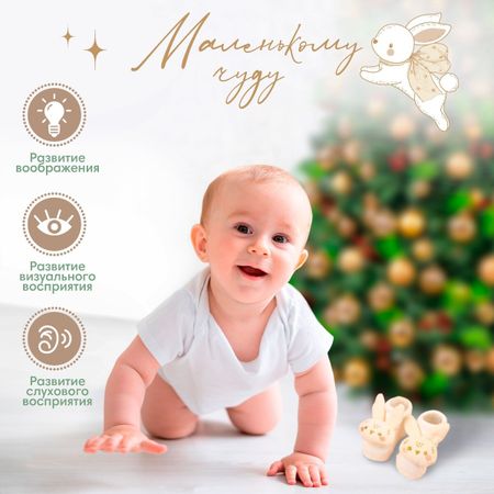 Подарочный набор новогодний M&B «Наше чудо», держатель для соски-пустышки на ленте, носочки — погремушки. Прищепка для пустышки предотвратит потерю маленького предмета. Используйте специальный держатель, и соска всегда будет под рукой! Изделие фиксируется на одежде ребенка. На конце цепочки есть карабин, который зацепляется за кольцо пустышки. Надежное крепление убережет вещь от падения на пол, если малютка случайно выронит ее изо рта. С держателем можно играть, притягательный дизайн точно понравится малышу. Товар изготовлен из качественного нетоксичного материала. Подходит для деток с рождения. Носочки погремушки со звуковым эффектом не только согреют ножки вашего малыша, но и привлекут его внимание яркими цветами, а также звоном погремушек. Малыш сможет до них дотянуться, потрогать ручками или просто погреметь ими, подергав ножками. Малыш играет и развивает не только мышцы, но и координацию, моторику, внимание, зрение, слуховое восприятие. Милые игрушки пробуждают его стремление исследовать мир вокруг себя. Изготовлены из качественного и безопасного для здоровья детей материала, который не выцветает. Станут отличным подарком вашим близким.. Подарочный набор станет прекрасным сюрпризом для малышей и родителей! Подарите малышу Новогоднее настроение в самый волшебный праздник!