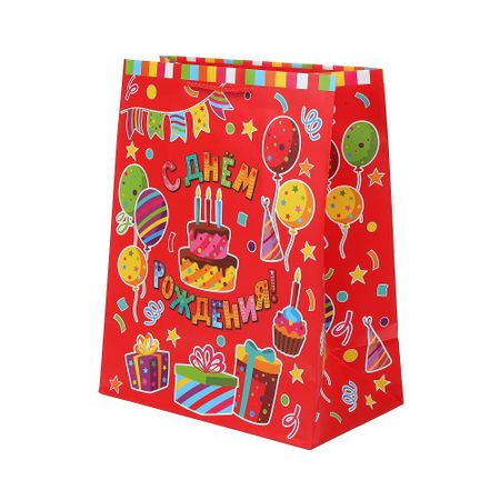 Подарочный пакет ЧУДО ПРАЗДНИК PL-122090-HBZ5. Подарочный матовый пакет ТМ «Чудо-праздник» станет отличным дополнением к вашему подарку и сделает его незабываемым:<br> — удобные и крепкие ручки<br> — эффектный дизайн<br> — размер L: можно поместить средний подарок или пару небольших<br> <br> Праздничный подарочный пакет станет ярким запоминающимся штрихом, изюминкой детского подарка, и принесет ребенку радость предвкушения. Ему будет интересно заглянуть в него, чтобы узнать, что же приготовили родные или друзья на день рождения или на любой другой праздник.<br> <br> Размер пакета: 26 х 32 х 14 см.<br> Материал: бумага мелованная.
