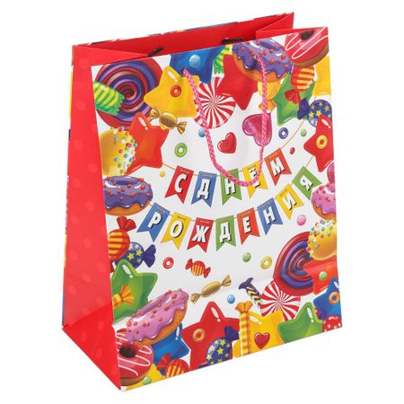 Подарочный пакет ЧУДО ПРАЗДНИК PML-122081-HBZ3. Подарочный матовый пакет «День рождения» ТМ «Чудо-праздник» станет отличным дополнением к вашему подарку и сделает его незабываемым:<br> — удобные и крепкие ручки<br> — эффектный дизайн<br> — небольшой размер МL: подойдет для не очень крупного подарка<br> <br> Праздничный подарочный пакет станет ярким запоминающимся штрихом, изюминкой детского подарка, и принесет ребенку радость предвкушения. Ему будет интересно заглянуть в него, чтобы узнать, что же приготовили родные или друзья на день рождения.<br> <br> Размер пакета: 22 х 31 х 10 см.<br> Материал: бумага мелованная.