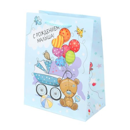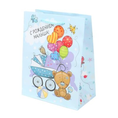 Подарочный пакет ЧУДО ПРАЗДНИК PMM-113269-HBB. Подарочный матовый пакет «С рождением малыша!» ТМ «Чудо-праздник» — отличный вариант для красивой презентации подарка:<br> — удобные и крепкие ручки<br> — эффектный дизайн<br> — малый размер М: подойдет для небольшого подарка<br> <br> Праздничный подарочный пакет с милым принтом станет прекрасным дополнением для подарка молодым родителям и новорожденному. Дарителю не нужно будет тратить время и силы на упаковку своего презента в упаковочную бумагу, подборку ленты — достаточно просто положить подарок в такой праздничный пакет!<br> <br> Размер пакета: 18 х 23 х 10 см.<br> Материал: бумага мелованная.