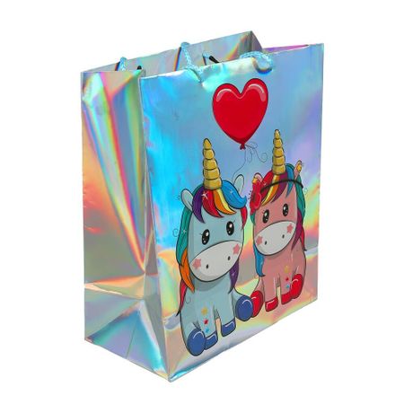 Подарочный пакет ЧУДО ПРАЗДНИК PXL-114694-UF. Подарочный пакет с голографией ТМ «Чудо-праздник» станет отличным дополнением к вашему подарку и сделает его незабываемым:<br> — удобные ручки<br> — эффектный дизайн<br> — размер XL: подойдет для большого подарка<br> <br> Праздничный подарочный пакет с изображением милых единорогов станет ярким запоминающимся штрихом, изюминкой детского подарка, и принесет ребенку радость предвкушения. Ему будет интересно заглянуть в него, чтобы узнать, что же приготовили родные или друзья на день рождения.<br> <br> Размер пакета: 33,5 х 45 х 15 см.<br> Материал: бумага мелованная.