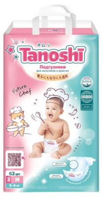 Tanoshi (с японского восхитительный) созданы экспертами отрасли с многолетним опытом и сочетают в себе все самые лучшие разработки последних лет в изготовлении детских подгузников. С Tanoshi безопасно: