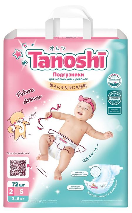 Подгузники для детей Tanoshi S 3-6 кг, 72 шт