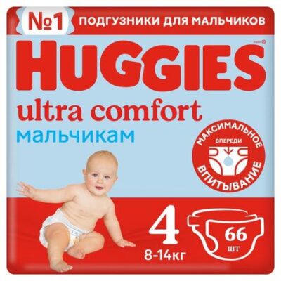 Подгузники Huggies Ultra Comfort с тремя впитывающими каналами созданы специально для мальчиков!