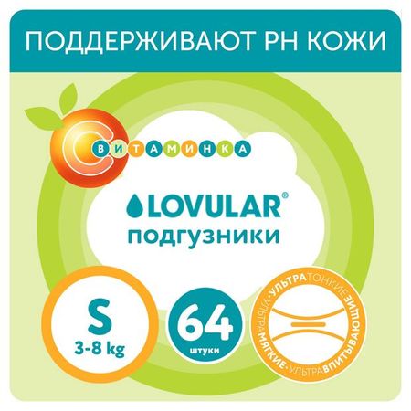Подгузники Lovular Витаминка S 3-8 кг., 64 шт