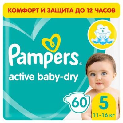 Подгузники Pampers Active Baby 5 (11-16 кг) 60 шт. Новые подгузники Pampers Active Baby-Dry с воздушными каналами дарят больше сухости* коже вашего малыша. Родители понимают, насколько важно, чтобы кожа малыша дышала . Именно поэтому они стараются не надевать подгузник на малыша в течение дня. Подгузники Pampers помогают коже вашего малыша оставаться сухой и дышать ночью, обеспечивая ей воздушную сухость. Подгузники Pampers Active Baby-Dry с воздушными каналами, позволяющими воздуху циркулировать внутри подгузника. (*по сравнению с подгузниками экономичного сегмента). Подгузники Pampers Active Baby-Dry с уникальными Воздушными каналами, обеспечивающими воздушную сухость всю ночь. Дополнительный слой помогает равномерно распределять влагу внутри подгузника. Внутренний впитывающий слой с жемчужными микрогранулами впитывает влагу и надежно удерживает ее внутри. Тянущиеся боковые застежки обеспечивают комфортную посадку, отлично защищая от протеканий ночью. Мягкий как хлопок верхний слой, прилегающий к коже малыша (не содержит хлопка). Забавные рисунки на внешней стороне подгузника помогут сделать процесс смены подгузника легким и веселым как для малыша, так и для мамы. Страна-производитель: Польша.