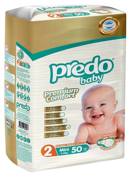 Подгузники Predo baby Преимущественная пачка 2 (3-6 кг) 50 шт. Тонкие, дышащие, гипоаллергенные и удобные для малышей подгузники. Именно о таких думает мама, когда выбирает Predo Baby. За счет защитного барьера вам не страшны протекания. А с мягким внутренним слоем не будет раздражения на коже младенца. Компания Predo более 12 лет производит качественную детскую косметику. В этом убедились миллионы мам в 20 странах мира. Уверены, что и вам подгузники Predo Baby подойдут для активных дней и спокойных ночей.