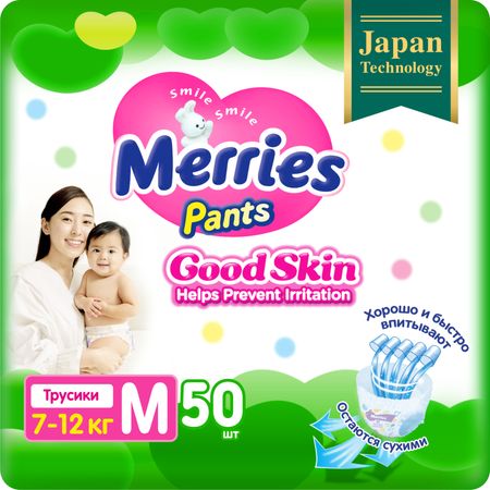 Подгузники-трусики Merries Good skin M / 3 (7-12 кг), 50 шт, по японским технологиям