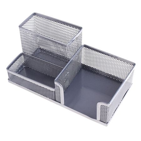 Подставка для канцелярских мелочей, 3 отделения, серая сетка. Практичная металлическая подставка-органайзер для хранения различных канцелярских принадлежностей.