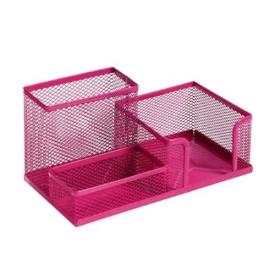 Подставка для канцелярских мелочей 3 отделения сетка металл розовая. Органайзер для канцелярских мелочей 3 отделения металлическая сетка розового цвета — это не только практичное, но и стильное решение для организации вашего рабочего пространства. Компактные размеры органайзера позволяют легко вписать его в любой интерьер, будь то офис, студия или домашний кабинет. Стаканчик подходит для использования как на столе, так и в ящиках. <li> Благородя легкому весу, его можно легко перемещать в зависимости от ваших нужд.</li> <li> Настольная подставка изготовлена из прочного металлического материала.</li> <li> Три отделения позволяют удобно размещать ручки, карандаши, маркеры и другие мелочи.</li> <li> Сетка обеспечивает хорошую видимость содержимого, что делает поиск необходимым предметов быстрым и простым.</li> <li> С помощью своего современного дизайна и яркого розового цвета детская подставка для канцелярии станет не только полезным предметом, но и привлекательным элементом декора вашего рабочего стола.</li> <b> Это идеальный выбор для студентов, офисных работников и всех, кто ценит порядок и стиль в своем окружении.</b>