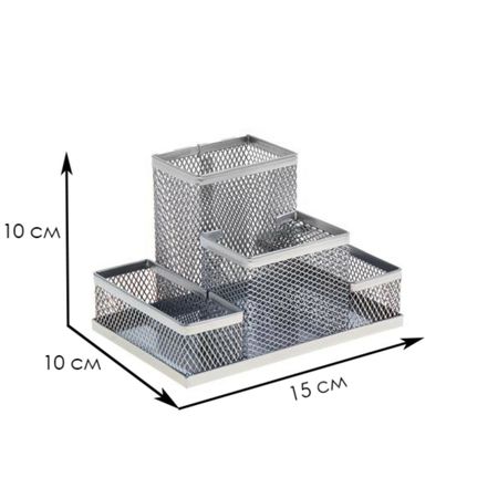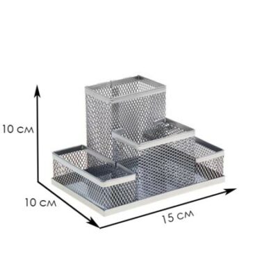 Подставка для канцелярских мелочей 4 отделения, светлая, металлическая сетка. <ul> Настольная подставка Calligrata с 4 отделениями обладает функциональной и стильной конструкцией, которая подходит для хранения канцелярских мелочей.</ul> <li> Прочный корпус выполнен из высококачественного металла, а сетчатое исполнение предотвращает образование пыли внутри.</li> <li> Имеются мягкие подушечки на дне, предотвращающие скольжение и повреждения поверхности.</li> <b> Идеально сочетается с другими канцелярскими товарами Calligrata.</b>