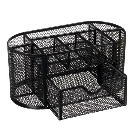 Подставка для канцелярских мелочей 9 отделений, сетка металл, черная. <ul> Настольная подставка Calligrata с 9 отделениями обладает функциональной и стильной конструкцией, которая подходит для хранения канцелярских мелочей.</ul> <li> Прочный корпус выполнен из высококачественного металла, а сетчатое исполнение предотвращает образование пыли внутри.</li> <li> Имеются мягкие подушечки на дне, предотвращающие скольжение и повреждения поверхности.</li> <b> Идеально сочетается с другими канцелярскими товарами Calligrata.</b>