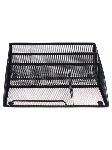 Подставка для канцелярских принадлежностей, 5 отделений, сетка, металл, черная. Черная металлическая подставка-органайзер станет вашим лучшим помощником на рабочем столе. Эффективно преобразуйте свое рабочее пространство, разместив канцелярские принадлежности в компактных и функциональных отделениях. Забудьте о хаосе в офисе и насладитесь простотой и порядком, который обеспечивает этот удобный стальной органайзер. <b> Особенности</b> <ul> <li> 5 отделений для различных канцелярских аксессуаров.</li> <li> Стильный и современный черный дизайн.</li> <li> Изготовлена из прочного металлического материала.</li> <li> Подходит для офисного и домашнего использования.</li> <li> Поставляется в единичном комплекте.</li> </ul> <b> Организация без компромиссов</b> С этой подставкой ваш стол станет олицетворением порядка и организованности. Точное распределение аксессуаров поможет вам не отвлекаться на поиск нужной ручки или маркера, позволяя сосредоточиться на выполнении главных задач. Сделайте работу комфортной и конструктивной с этой незаменимой деталью вашего рабочего пространства.