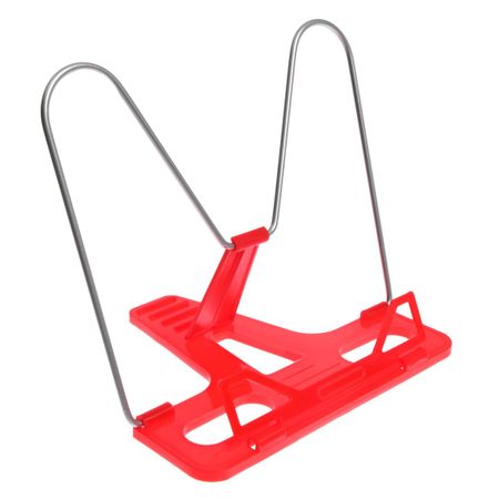 Подставка для книг "Отличный выбор", с пластиковым упором, эконом, красная. Подставка для книг "ЭКОНОМ" с облегченными потребительскими свойствами, идеально подойдет для фиксации книг, учебных материалов и станет незаменимым помощником для школьников и любителей чтения. Использование подставки для книг способствует правильному формированию осанки ребенка. Удобный упор удерживает учебник в вертикальном положении, облегчая чтение и подготовку домашней работы. Компактные размеры и вес подставки позволяют взять и разместить ее в любой сумке и взять с собой.Угол наклона регулируется, обеспечивая удобство при работе с текстом.Нижние страницы надежно фиксируются прочным держателем.Корпус выполнен из металла, а основание и держатели — из прочного пластика. Размер подставки — 19 х 18 см.
