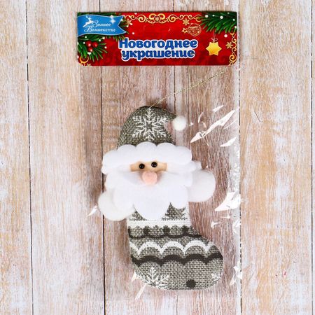 Подвеска мягкая на елку «Дед Мороз в костюмчике с орнаментом лес в носке» 7×13 см, серая. Мягкая подвеска «Дед Мороз с орнаментом» на елку — это доброжелательный и образной акцент для новогоднего убранства. Украшение выполнено в виде зимнего персонажа с принтом в виде лесного мотива — деталь декора в стиле скандинавского минимализма, датской классики и ар-деко для тех, кто ценит форму, свет и атмосферу праздника в мягкой и теплой подаче. <b> Особенности</b> <ul> <li> Тип — мягкая игрушка на елку, используется как самостоятельный элемент или часть общей композиции при оформлении дома или офиса в предпраздничные дни.</li> <li> Материал — текстиль, обеспечивающий мягкость и прочность формы, подходящий для многократного использования без потери внешнего вида.</li> <li> Цвет — серый, создает ощущение зимней свежести и уюта, сочетается с белыми, золотыми и деревянными оттенками в новогоднем дизайне.</li> <li> Форма — Дед Мороз, добавляет елке доброты, символичности и предпраздничного чуда в понятном и любимом образе.</li> <li> Стиль — соединение простоты скандинавского минимализма, романтики датского дизайна и роскоши ар-деко в одной целостной и эмоциональной форме без излишней детализации.</li> </ul> <b> Праздник начинается с одного взгляда на Деда Мороза и его костюм с лесным узором</b> Эта подвеска делает елку частью вашей истории о подарках и ожидании чуда Нового года. Серый фон и орнамент в виде зимнего леса работают вместе, чтобы передать дух праздника и семейное тепло. Используйте ее как центральный акцент или рядом с другими украшениями — одинаково мягко усиливает атмосферу торжества и добрую предпраздничную гармонию.
