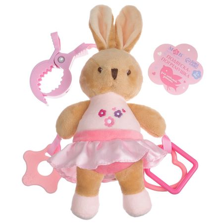 Подвеска мягкая на кроватку/коляску M&B «Зайка», погремушка, прорезыватель, от 3 мес.. Занимательная мягкая развивающая подвеска игрушка станет первой любимой вещью для малыша. Ваш кроха будет с удовольствием изучать не только образ медвежонка, но и развивать тактильные ощущения, знакомясь с фактурой тканевых материалов, ведь это еще и мягкая игрушка. Занятия с ярким фигурным предметом способствует более раннему развитию мозга, остроты зрения и способности фокусироваться на предметах, развивает внимание, поле зрения, улучшает цветовосприятие и даже успокаивает ребенка в периоды перевозбуждения. Особенный интерес представляет грызунок-прорезыватель — его приятно погрызть, или просто потрогать пальчиками. Грызунок отлично снимает зуд при прорезывании зубов. Благодаря разъемному колечку хрустяшку удобно повесить на коляску, автокресло, кроватку. Многофункциональная игрушка-подвеска развивает зрение, воображение малыша, тактильность и надолго концентрирует его внимание. Изготовлена из ярких безопасных материалов, что дает возможность использовать игрушку для малышей от 3+. Есть необходимые сертификаты, в том числе сертификат гипоаллергенности. Легко стирать. Такая мягкая подвеска долго прослужит Вашему малышу и поможет развивать многие навыки. Идеально подойдет в качестве подарка новорожденному.