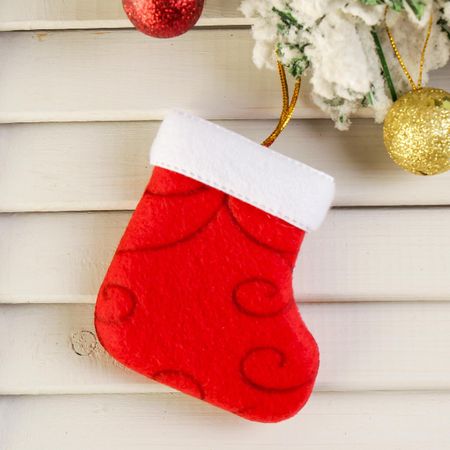 Подвеска на елку «Носок с узорами», мягкая, 6×8 см, красный. Подвеска на елку «Носок с узорами», мягкая, 6×8 см, красный такая же уютная, как и встреча Нового года в теплом семейном кругу. Такое украшение станет душевным знаком внимания для родных и друзей. Подвеска из текстиля очень легкая, она украсит праздничную ель или другие предметы новогоднего интерьера и сделает торжество еще более нарядным.