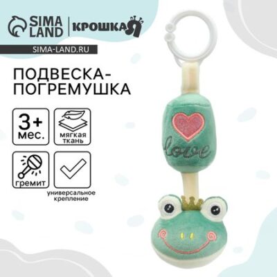 Подвеска — погремушка на кроватку/коляску Крошка Я «Лягушастик», от 3 мес.. Развивающая погремушка-подвеска — это игрушка, которая подойдет для совсем маленьких детей. Подвеска с легкостью крепится на коляске, развивающем коврике или над кроваткой и привлекает внимание малыша. Это первая развивающая игрушка для грудничков: она создана из безопасных материалов, ее можно крутить, трясти и даже грызть. Удобный универсальный крепеж в виде прищепки или разъемного кольца позволяет закрепить подвеску на коляску, кроватку или детское автокресло. Товар сертифицирован. Соответствует требованиям безопасности детской продукции. Рекомендуется детям от 0 месяцев. Развивающая игрушка-подвеска "Крошка Я" станет отличным подарком на выписку!