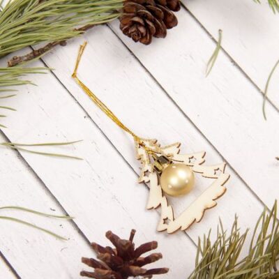 Подвеска с елочной игрушкой «Ёлочка». Новогодние чудеса! Очаровательная деревянная подвеска станет интересной деталью интерьера или милым сувениром, который придется по вкусу любому и не потребует больших финансовых затрат. Эти изделия из натуральной древесины практичные, долговечные и безопасные для малышей. Украсьте елочку такими игрушками и наслаждайтесь волшебной атмосферой праздника!