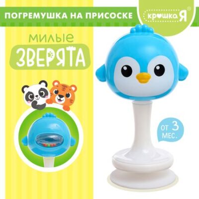 Погремушка «Милые зверята: Пингвин», на присоске. Погремушка «Милые зверята: Пингвин» разработана специально для малышей от 3 месяцев. Игрушка привлечет внимание трогательным дизайном и надолго займет малыша. Перед первой игрой промойте игрушку под проточной водой с мылом. <b> Особенности погремушки</b> <ul> <li> При взаимодействии с игрушкой ребенок услышит забавные звуки: внутри пингвина находится элемент с гремящими при движении шариками.</li> <li> Изготовлена из безопасного гипоаллергенного пластика.</li> <li> Легко крепится с помощью присоски к гладким поверхностям: столу, полу, ванне.</li> <li> У погремушки есть ручка, за которую малышу будет удобно держать ее.</li> <li> Размер игрушки: 12 × 6 × 5,5 см.</li> </ul> <b> Чем полезны занятия с погремушкой</b> Взаимодействуя с игрушкой, ребенок тренирует мелкую моторику, координацию движений, развивает воображение, слуховое и визуальное восприятие.