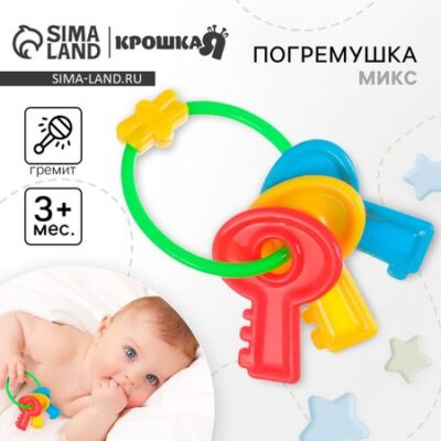 Погремушка Крошка Я «Ключики яркие», от 3 мес.. Важным аспектом развития вашего малыша является его игровая активность. Представляем вам наши уникальные детские погремушки — не только веселые игрушки, но и мощные инструменты развития! Почему наши погремушки — лучший выбор: <ol> <li> Качественные материалы: Мы используем только безопасные и высококачественные материалы для создания наших погремушек. Вы можете быть уверены, что ваш ребенок играет с игрушкой, свободной от вредных веществ и абсолютно безопасной.</li> <li> Развитие слуха и визуального восприятия: Погремушки стимулируют слуховое восприятие ребенка. Звуки, которые издает погремушка, помогают развивать его аудиальные навыки и способности. Кроме того, яркие цвета и интересные формы погремушек развивают визуальное восприятие и помогают ребенку развивать свою фокусировку зрения.</li> <li> Привлекательный дизайн: Наши погремушки специально разработаны для привлечения внимания малышей. Яркие цвета, забавные текстуры и уникальные формы — все это привлекает внимание ребенка и помогает развивать его сенсорные способности.</li> <li> Легкость и удобство использования: Наши погремушки имеют оптимальный размер и форму для маленьких ручек ребенка. Они легко ухватываются и удобно держатся, позволяя малышу самостоятельно исследовать и играть с ними.</li> </ol> Дарите своему малышу игрушку, которая не только привлекает его внимание, но и способствует его развитию. Приобретайте наши детские погремушки и помогите вашему ребенку открыть мир звуков, цветов и визуальных впечатлений уже сегодня!