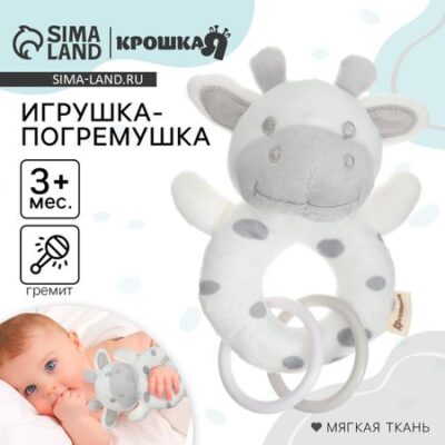Погремушка мягкая Крошка Я «Коровка», на кольце, от 3 мес.. <b> Развитие воображения</b> Ребенок сможет придумать массу различных сюжетов и историй с этой забавной игрушкой, тренируя фантазию или воображение <b> Развитие визуального восприятия</b> Игрушка способствует развитию зрения малыша. Ребенок фиксирует взгляд на движущемся предмете, что стимулирует зрительное сосредоточение <b> Развитие моторики и координации</b> Игрушка способствует развитию мелкой моторики рук и координации движений малыша