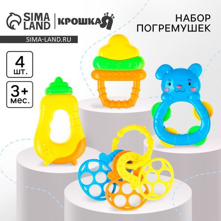 Погремушки «Яркое настроение», от 3 мес., 4 шт.. Важным аспектом развития вашего малыша является его игровая активность. Представляем вам наши уникальные детские погремушки — не только веселые игрушки, но и мощные инструменты развития! Почему наши погремушки — лучший выбор: <ol> <li> Качественные материалы: Мы используем только безопасные и высококачественные материалы для создания наших погремушек. Вы можете быть уверены, что ваш ребенок играет с игрушкой, свободной от вредных веществ и абсолютно безопасной.</li> <li> Развитие слуха и визуального восприятия: Погремушки стимулируют слуховое восприятие ребенка. Звуки, которые издает погремушка, помогают развивать его аудиальные навыки и способности. Кроме того, яркие цвета и интересные формы погремушек развивают визуальное восприятие и помогают ребенку развивать свою фокусировку зрения.</li> <li> Привлекательный дизайн: Наши погремушки специально разработаны для привлечения внимания малышей. Яркие цвета, забавные текстуры и уникальные формы — все это привлекает внимание ребенка и помогает развивать его сенсорные способности.</li> <li> Легкость и удобство использования: Наши погремушки имеют оптимальный размер и форму для маленьких ручек ребенка. Они легко ухватываются и удобно держатся, позволяя малышу самостоятельно исследовать и играть с ними.</li> </ol> Дарите своему малышу игрушку, которая не только привлекает его внимание, но и способствует его развитию. Приобретайте наши детские погремушки и помогите вашему ребенку открыть мир звуков, цветов и визуальных впечатлений уже сегодня!
