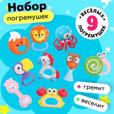 Погремушки с прорезывателями для зубов «Совушка», набор 9 шт.. Яркий и развивающий набор из 9 погремушек-прорезывателей для зубов «Совушка» станет отличным спутником для малыша с первых дней жизни. Каждая погремушка выполнена из безопасных материалов и имеет приятную текстуру. <b> Особенности</b> <ul> <li> Каждая погремушка отличается по форме, размеру и текстуре. Это позволяет малышу изучать различные ощущения.</li> <li> Специальная текстурированная поверхность поможет облегчить зуд десен во время прорезывания зубов.</li> <li> Насыщенные цвета привлекают внимание ребенка и способствуют развитию зрительного восприятия.</li> <li> При встряхивании погремушки издают веселые звуки, которые радуют малыша.</li> <li> Игрушки изготовлены из качественных и безопасных для детей материалов.</li> </ul> <b> Развлечение и обучение</b> Игра с погремушками — это не только весело, но и полезно для развития малыша. Разнообразные формы, текстуры и звуки стимулируют сенсорное восприятие, мелкую моторику и координацию движений. Яркие цвета привлекают внимание и способствуют развитию зрительного восприятия.