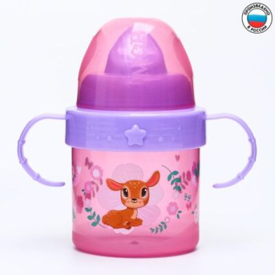 Поильник детский M&B «Оленята. Мамы и малыши» с твердым носиком, от 9 мес., 140 мл., с ручками, розовый. Изделие поможет малышу научиться пить из чашки. Конструкция емкости подходит для удобного захвата детскими ладошками. А твердый носик будет стимулировать десны малютки в период прорезывания зубов. <b> Особенности</b> <ul> <li> Поильник предназначен для комфортного и безопасного перевода ребенка на кормление без использования соски.</li> <li> Предмет учит малыша координировать движения рук и подносить кружку ко рту.</li> <li> Удобный носик поможет тренировать навыки самостоятельного питья.</li> </ul> После каждого применения мойте теплой мыльной водой и тщательно ополаскивайте. Качество товара подтверждается сертификатом соответствия ЕАС. Поильник выполнен из безопасного пластика, предназначенного для производства детской посуды.