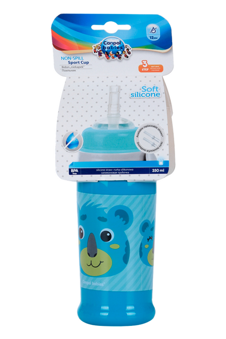Поильник-непроливайка Canpol спорт с трубочкой/крышкой коала бирюз (с 12 мес), 350 мл
