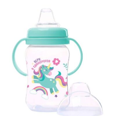 Поильник-непроливайка детский M&B «Единорог» мягкий носик, от 9 мес., 270 мл.. Изделие подходит для малышей, которые учатся пить самостоятельно. Использование трубочки поможет перейти от бутылочки к чашке. Особенности Для обеспечения необходимой гигиены емкость закрывается. Гибкая соломинка не травмирует нежные десны ребенка. Мягкая трубочка облегчает питье. Ёмкость не будет скользить в руках. Качество товара подтверждается сертификатом соответствия ЕАС. Поильник выполнен из безопасного пластика, предназначенного для производства детской посуды.