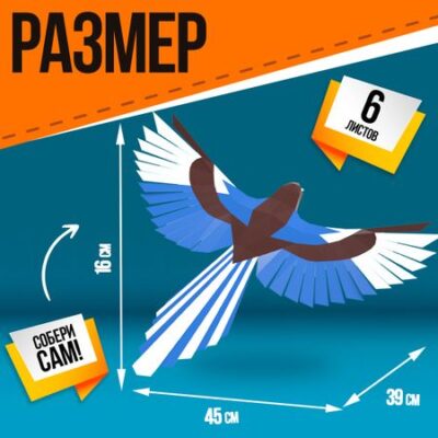 Полигональный конструктор «Птица», 6 листов. Полигональный 3D-конструктор — это множество небольших элементов из бумаги, которые склеиваются между собой и превращаются в объемную фигуру. <b> Как собрать полигональную фигуру</b> <ul> <li> Вырежьте все детали по сплошной линии.</li> <li> Продавите места сгиба.</li> <li> Сгибайте края и плоскости деталей по указанным линиям. Штриховые линии — сгиб на себя. Штрихпунктирные — от себя.</li> <li> Скрепите все детали клеем ПВА.</li> </ul> <b> Неоспоримая польза</b> Игры с конструктором разовьют у ребенка мелкую моторику, внимательность, воображение, логическое и образное мышление. Товар предназначен для детей старше 5 лет.