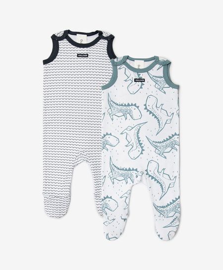 Комплект из 2-х ползунков с закрытыми ножками и застёжками на плечах — прекрасный выбор для первого гардероба ребёнка. Интересный дизайн, построенный на оригинальных принтах в бело-голубых тонах, делает ползунки очень привлекательными и для родителя, и для ребёнка. Они выполнены из хлопкового трикотажа, который гарантирует максимальный комфорт, уют и безопасную эксплуатацию. В оформлении изделий используется стильная жаккардовая нашивка.