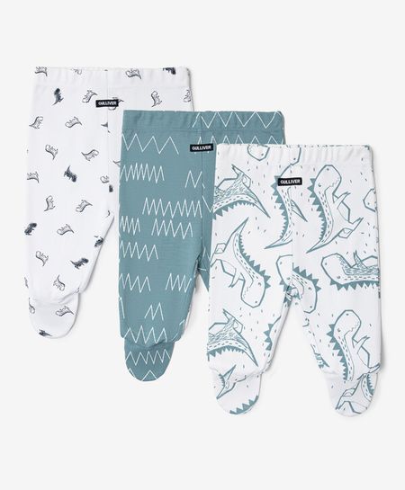 Ползунки с закрытыми ножками из хлопкового трикотажа с оригинальными принтами в бело-голубых тонах комплект из 3-х штук Gulliver