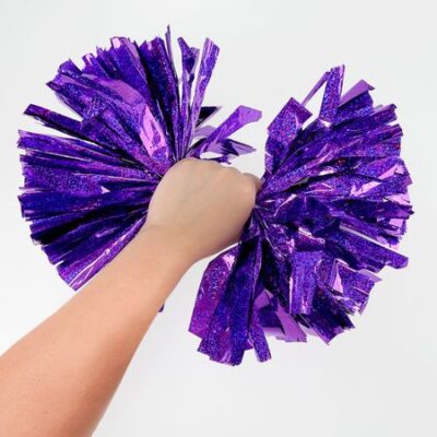 Помпон для чирлидинга, 1 шт., фиолетовый голография. ВНИМАНИЕ: эксплуатацию и хранение товара необходимо осуществлять в сухом виде, при соприкосновении с водой может окрашивать руки и одежду, товар необходимо держать за пластиковые ручки. Помпон — это универсальный аксессуар, который подойдет в качестве атрибута для чирлидинга или как яркое украшение для любого мероприятия. Помпоны используются в чирлидинге для привлечения внимания и подчеркивания движений. Чаще всего применяются парами по одному в каждой руке, но это может варьироваться в зависимости от танца. Как правило помпоны подбираются в соответствии с цветом формы или спортивной эмблемы. Такие изделия могут использоваться как в хореографических шоу, так и для поддержки команд.