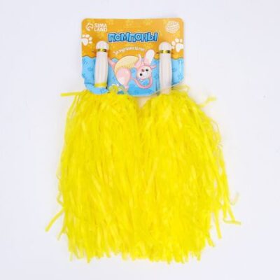Помпоны для чирлидинга 2 шт., желтые. ВНИМАНИЕ: эксплуатацию и хранение товара необходимо осуществлять в сухом виде, при соприкосновении с водой может окрашивать руки и одежду, товар необходимо держать за пластиковые ручки. Помпон — это универсальный аксессуар, который подойдет в качестве атрибута для чирлидинга или как яркое украшение для любого мероприятия. Помпоны используются в чирлидинге для привлечения внимания и подчеркивания движений. Чаще всего применяются парами по одному в каждой руке, но это может варьироваться в зависимости от танца. Как правило помпоны подбираются в соответствии с цветом формы или спортивной эмблемы. Такие изделия могут использоваться как в хореографических шоу, так и для поддержки команд.