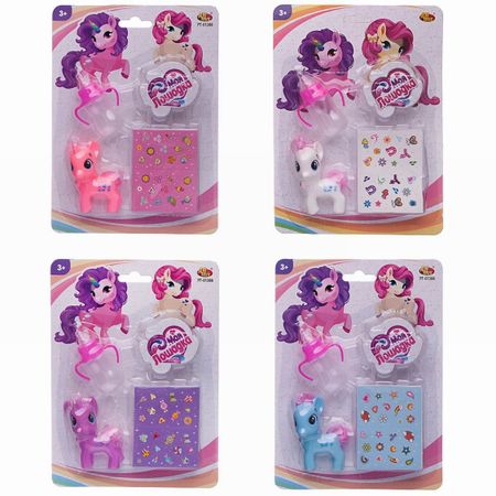 Лошадки и пони — любимые игрушки всех девочек, ведь они такие красивые и добрые, с ними так интересно играть! Очаровательная пони-единорог из серии «Моя лошадка» от бренда ABtoys может стать замечательным дополнением к коллекции игрушечных животных малышки. Пони-лошадка идеально впишется в любую сюжетно-ролевую или тематическую игру девочки. Яркими наклейками, которые входят в состав набора, девочка сможет дополнительно украсить свою лошадку и ее поильник. Игра с пони обязательно будет интересной и увлекательной.Набор представлен в ассортименте, в 4 видах.