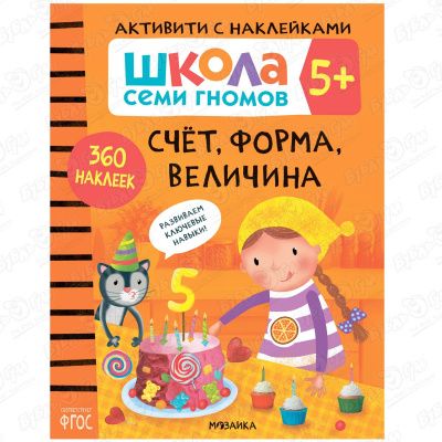 Пособие развивающее Школа Семи Гномов Счет форма и величина с наклейками с 5лет