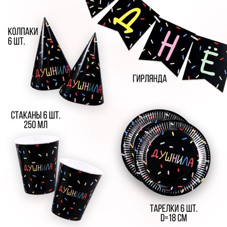 Главная » Товары для детей Посуда бумажная одноразовая Просмотров 3 Посуда бумажная одноразовая «Душнила», 6 тарелок, 1 гирлянда, 6 стаканов, 6 колпаков. Страна Карнавалия