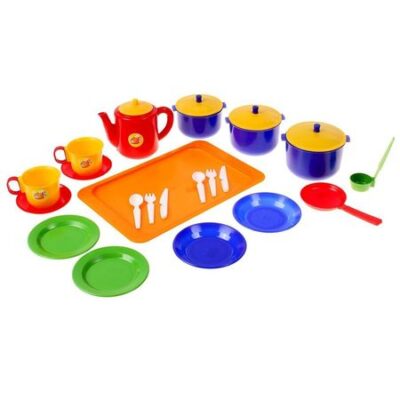 Игровой набор посуды для девочек «Хозяюшка» — это отличный выбор для маленьких хозяек, которые любят готовить и принимать гостей. Набор изготовлен из безопасных материалов и включает в себя всё необходимое для создания увлекательных и ярких игровых моментов.ОсобенностиВ комплект входят кастрюльки, чайник, кружки, тарелки и другие аксессуары для увлекательной готовки.Игровая посуда выполнена из безопасного пластика.Набор предназначен для девочек от 3 лет, он способствует развитию воображения и социальных навыков.Стильный дизайн и яркие цвета делают игру ещё более интересной.Играем с пользойЭтот набор посуды помогает развивать творческое мышление, навыки общения и координации. Малышка может устраивать завтраки, обеды и ужины для своих игрушек или приглашать друзей, разыгрывая различные сцены. Такие игры развивают социальные навыки и учат заботе о других.